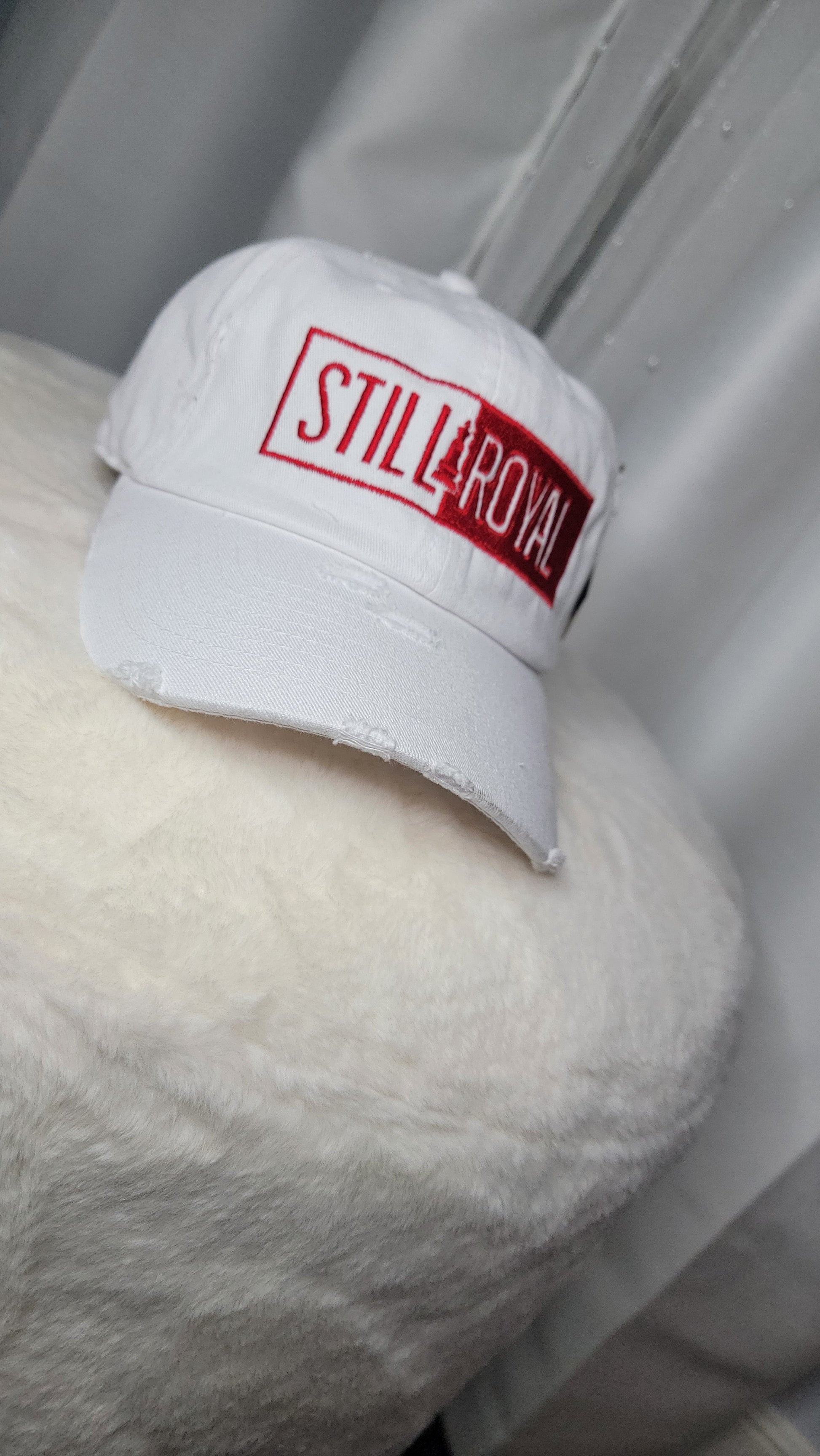This Block Print adjustable hat boasts a distressed finish for a rugged, lived-in look, complemented by an elegant, embroidered script logo. The classic six-panel construction with a curved brim and an adjustable strap offers a perfect blend of style and comfort.