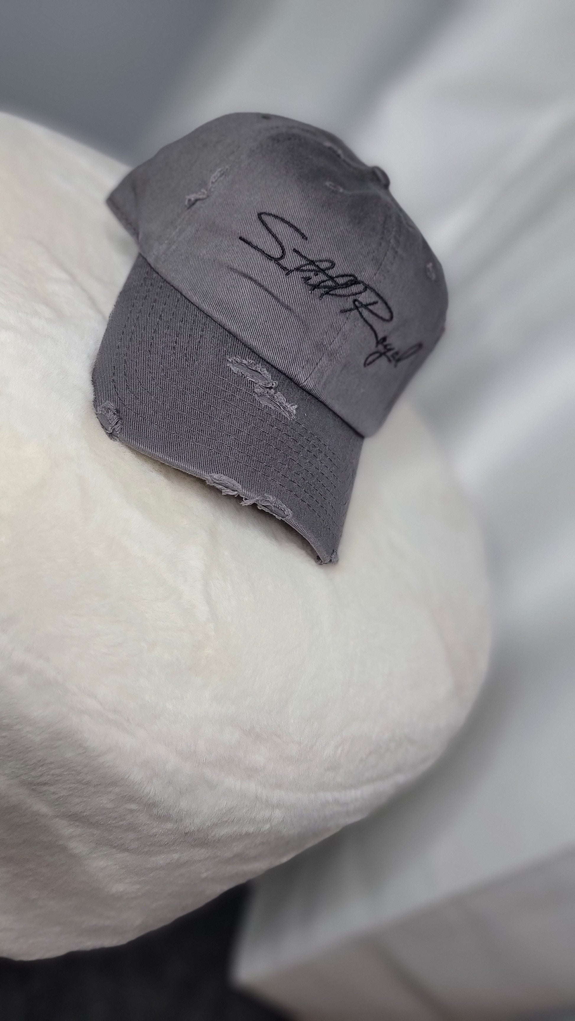 This SR Script adjustable hat boasts a distressed finish for a rugged, lived-in look, complemented by an elegant embroidered script logo. The classic six-panel construction with a curved brim and an adjustable strap offers a perfect blend of style and comfort.